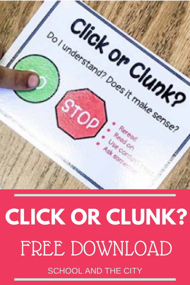 Essentially, students start by reading one sentence at a time. If they understand, they “click,” but if they don’t understand, they “clunk.” This strategy teaches students to stop when they get stuck instead of moving on without comprehending.